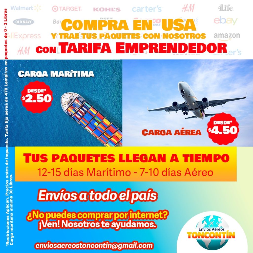 Importación de paquetería desde EE. UU. hacia Honduras vía aérea y marítima.
